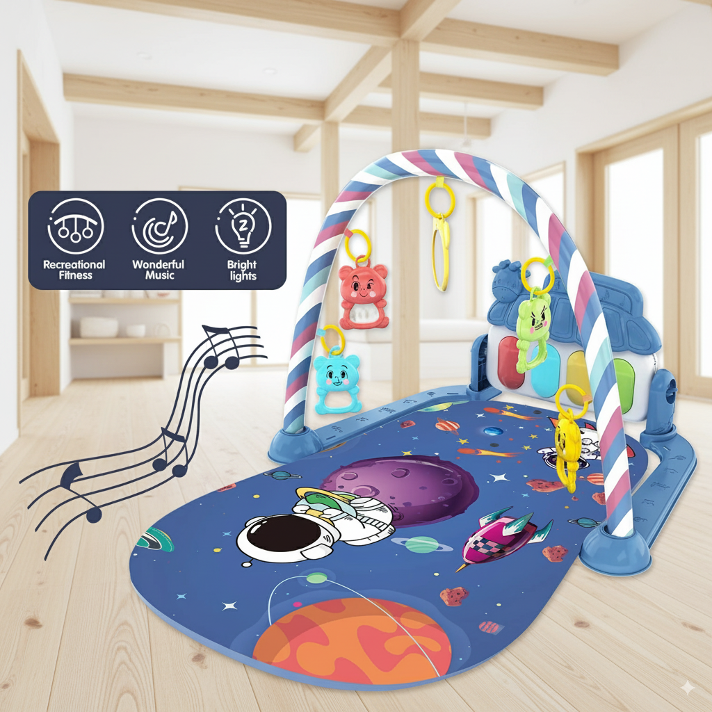 Tapiz para gimnasia de bebés con música y juguetes colgantes